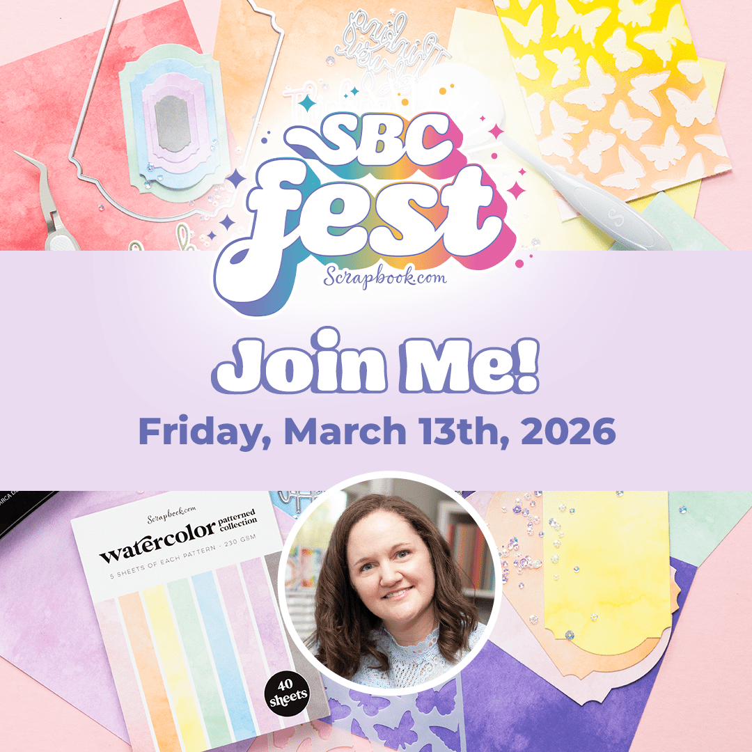 There is still time to sign up and get your class kits! I’m so excited to share that I’ll be teaching at the next SBC Fest with Scrapbook.com, happening on Friday, March 13th! The entire day of classes is completely free to watch, and class kits are available if you’d like to follow along with the same products. Of course, you can always shop your stash and use what you already have on hand! Can’t make it for all the classes on Friday? No worries at all. Since the event takes place on YouTube, you’ll be able to catch the replays whenever it works for you! IMPORTANT LINKS: I hope you will join me for a fun day of crafting in March for the next SBC Fest with Scrapbook.com! |